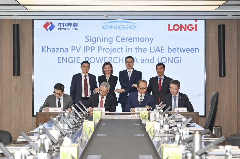 On November 16th, a project signing ceremony between Engie, SEPCOIII and Longi is held in Beijing, where they officially signed the contract for the Khazna 1500MW Solar PV Independent Power Project (EPC) in Abu Dhabi, UAE. The Khazna 1500MW Solar PV Independent Power Project (EPC) in Abu Dhabi, UAE, adopts a centralized photovoltaic layout, with supporting facilities including an automatic cleaning system, centralized inverters, box-type substations, horizontal single-axis tracking brackets and other related auxiliary facilities. After completion, the project will effectively enhance the diversity of the UAE's power grid supply structure, meet the growing industrial and civil power demand in the Abu Dhabi region, and provide solid support for optimizing the local energy structure and building a clean, low-carbon and modern power system. As another important cooperation achievement between Engie Group and SEPCOIII following the Saudi Jubail 3B Seawater Desalination Project, this project is also the first large-scale photovoltaic project undertaken by SEPCOIII in the UAE market under the EPC mode. SEPCOIII has actively responded to China's "Belt and Road" Initiative, deeply integrated into the UAE's "Energy Strategy 2050", and fully seized the key opportunities for the coordinated development of gas and renewable. The successful signing of this project marks that SEPCOIII has achieved diversified layout and comprehensive breakthroughs in the fields of traditional energy, new energy and seawater desalination in the UAE market, further demonstrating its core competitiveness and brand influence in the high-end new energy market in Middle East. Looking ahead, SEPCOIII will adhere to advance the international development strategy, continue to deepen its presence in Middle East market and improve its global layout. It will inject new impetus into the high-quality development of the "Belt and Road" Initiative and contribute SEPCOIII's strength to the global energy transition. |