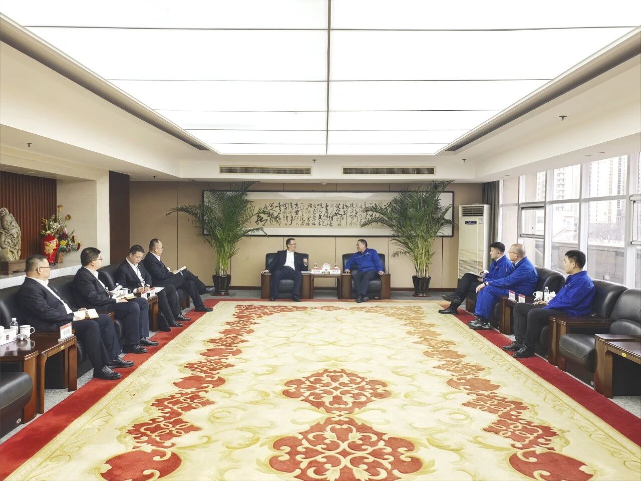 On the afternoon of December 22nd, Zhao Qiming,Chairman of the company, , held a meeting with Su Xinghui,Chairman of Huadian Qingdao Power Generation Co., Ltd., Liu Bin, The General Manager of Huadian Qingdao Power Generation Co., Ltd., Hao Zongpeng, the Chief Engineer and Ni Jiaweithe Vice General Manager, attended the meeting. Zhao Qiming reviewed the history of their cooperation and introduced the company's development evolution, the advantages of the EPCO integrated industrial chain, the situation of specialized subsidiaries, and the competitiveness in the photothermal field. He stated that Huadian Qingdao Company, as an important energy enterprise in Qingdao, has a high degree of compatibility and strong complementarity with our company in areas such as energy project development, construction, operation and maintenance, and inspection and repair. Shandong Electric Power Construction Third Company will fully leverage its unique advantages in engineering construction and resource coordination, continuously optimize the allocation of cooperation resources, and work together with Huadian Qingdao Company to jointly explore new paths for high-quality development in the energy sector and jointly write a new chapter of mutual benefit and win-win results. Su Xinghui warmly welcome the visit of Zhao Qiming and his team, and will comprehensively introduce the development overview, business layout and strategic planning of Huadian Qingdao Company. He stated that SEPCOIII has outstanding market performance and strong comprehensive strength, and is a reliable partner. The cooperation between Huadian Qingdao Company and this company has broad prospects and great potential. He looks forward to further innovating the cooperation mechanism, deepening strategic synergy, jointly creating benchmark demonstration projects and exemplary engineering models, achieving complementary advantages and mutual benefit, and contributing more to the energy security and green development of Qingdao City. Huadian Qingdao Power Generation Co., Ltd. and relevant company personnel attended the meeting. |