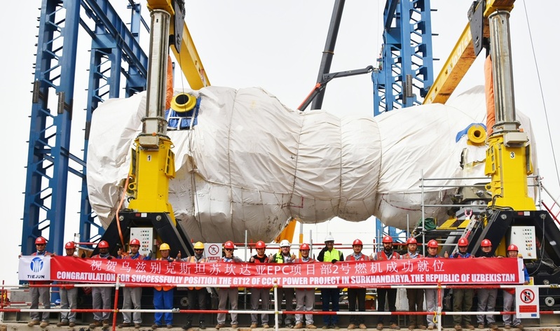 At 10:30 AM local time on November 1st, the GT12 of Uzbekistan Surkhandarya CCGT Power Project was smoothly positioned on its designated foundation with the precise coordination of multiple large hoisting devices. This marks the successful completion of another key construction milestone for the project and lays a solid foundation for subsequent unit installation and commissioning. The GT12 , manufactured and supplied by Siemens AG of Germany, is a heavy-duty gas turbine model SGT5-9000HL. This model is Siemens’ latest generation air-cooled gas turbine, with a rated output of 551.8 MW, a total weight of approximately 388.69 tons, and dimensions of 13170×4839×5108 mm. To ensure the safe and smooth implementation of the hoisting task, the project team held a special technical coordination meeting in advance, making meticulous arrangements for the hoisting plan, hoisting point layout, stress calculations, construction safety, and emergency measures. The hoisting operation utilized the ENENPAC SBL1100 hydraulic jacking device. All relevant professionals cooperated closely, strictly adhering to the established plan. On-site scheduling was scientific, orderly, and command precise and efficient. The project team will use this milestone as an opportunity to continue upholding the work principles of "High Standards, Strict Requirements, Detail Orientation, and Pragmatic Implementation" summarizing experiences, and making persistent efforts to fully advance subsequent key tasks such as electromechanical installation and system commissioning, ensuring the project is completed and put into operation on schedule with high quality and high standards.