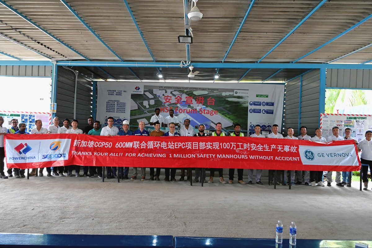 On February 10th, the EPC project department of the 600MW combined cycle power station of the EPC Project Department of Singapore CCP50 600MW Combined Cycle Power Plant held a celebration for achieving one million safe man-hours. At the event site, outstanding individuals and teams in the project's safety work were commended. The "Safety Advanced Individuals" and "Safety Winning Teams" were awarded their certificates of honor one by one. Finally, the owner, partners, project management, and employee representatives signed the commemorative banner together, making a commitment through their signatures to show respect for life safety and the determination to continuously improve the safety management level.