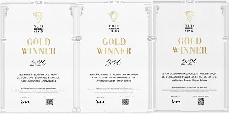 Recently, Saudi Yanbu 700MW Wind Independent Power EPC Project, Saudi Nairyah-1 1800MW IPP CCGT EPC Project and Saudi Rumah-1 1800MW IPP CCGT EPC Project have won the 2026 MUSE Design Awards Gold Winner in the category of Architectural Design – Energy Building. Founded in 2015 by the International Awards Associate (IAA) of the United States, the MUSE Design Awards is one of the most influential awards in the global design industry, known as the "Oscar of the design world". The award aims to break through possibilities, encourage innovative practices, and promote the development of the global design industry.